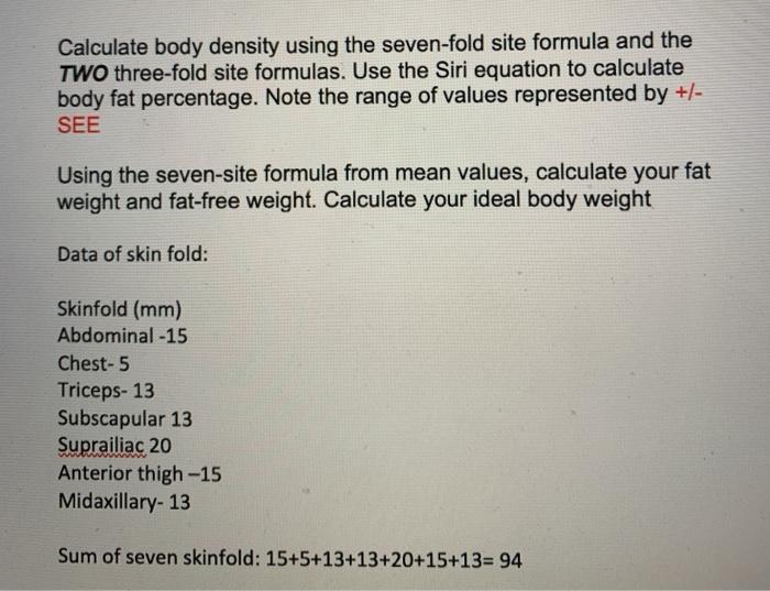 Solved Calculate Body Density Using The Seven Fold Site Chegg Com